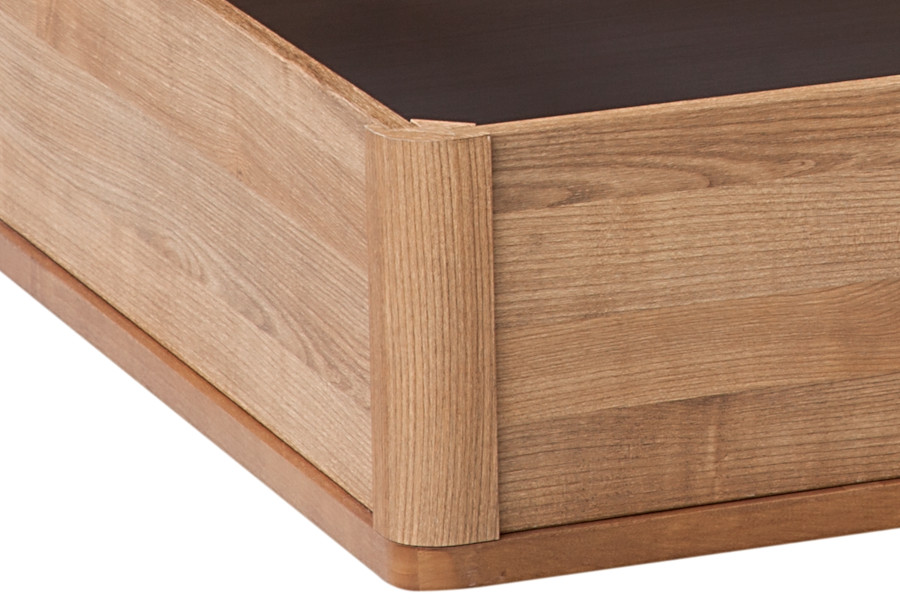 En medidas superiores a 135 cm de ancho la parte inferior se fabrica en cuerpos cara a facilitar entregas y posteriores traslados. Todos los acabados llevan incorporado un aro anti-deslizamiento, evitando desplazamientos del colchón al abrir el arcón.