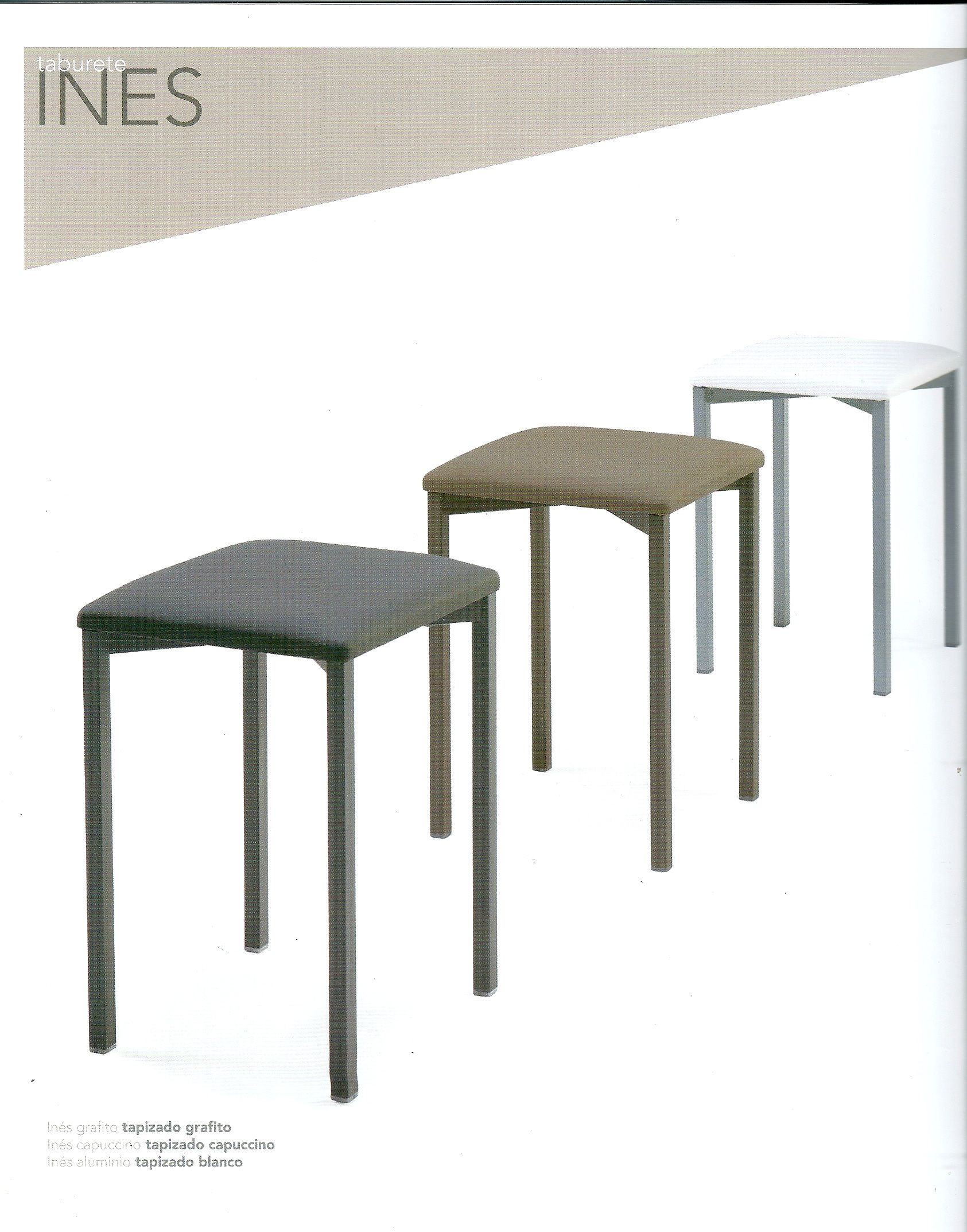La estructura del taburete INES es de acero en color aluminio con opción de pintar en otros colores.